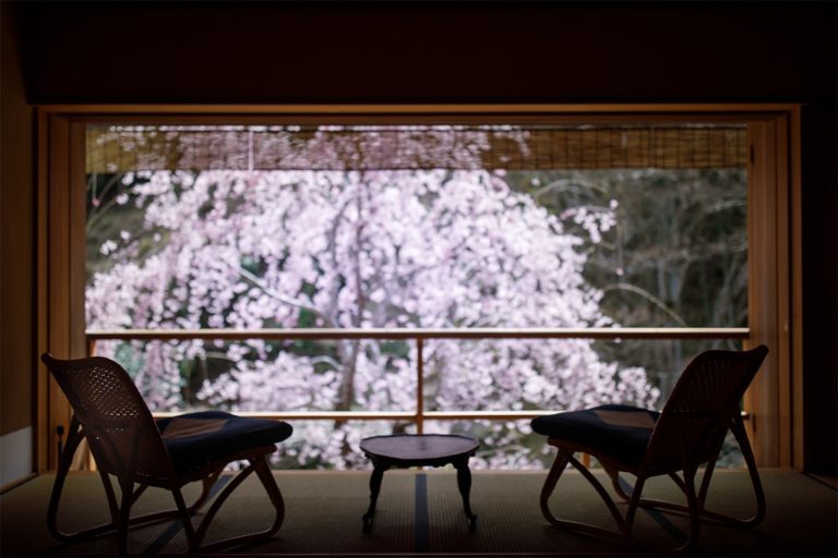 大自然に包まれたテラスには露天風呂とデイベッドが完備されている。海側に面したテラスには水盤があり、部屋からはまるで海に浮かんでいるような絶景を堪能できる。