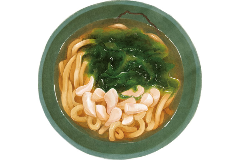 1924年創業の製麺所には麺づくりだけでなく出汁のノウハウも受け継がれ、利尻昆布や鰹節などでつくる出汁は料理店もお墨付きの味。その出汁を使った一番の人気メニューは、谷口さんの思い出の味である「おかあちゃんのうどん」。受験勉強に勤しむ息子に、商売で忙しい母が唯一用意できたうどんを再現している。開業当初から比べると、「しっぽくうどん」や「おけうどん」などメニュー数も増え、目下のウリは「カレーうどん」とか。思いのほかスパイシーで朝から目が覚める。