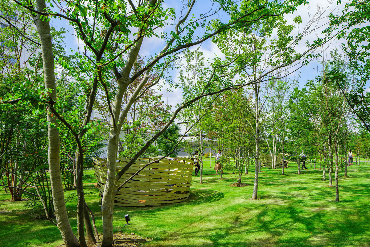 「シチズン時計」が本社を置く東京事業所では、「屋内でも屋外でも働ける」をコンセプトに、従業員の心身の健康に配慮した場づくりを推進。約4000㎡の広さを誇る工場と駐車場の跡地を緑地へと転換した「CITIZENの森」は、働く場所づくりで生まれた豊かなランドスケープである。