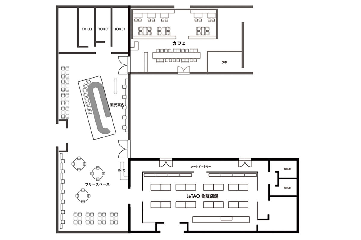 歴史を生かすというマインドは、ルタオ運河プラザ店にも受け継がれている。たとえば空間設計では、歴史的な木骨石造建築の雰囲気をそのまま残した。