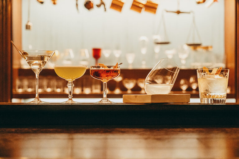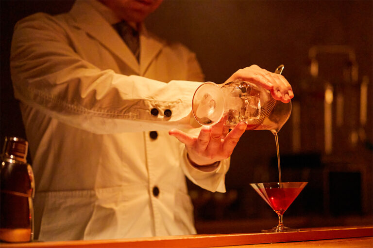 バーカウンターでは、ぜひ、瀬戸内の恵みを閉じ込めたオリジナルカクテルを。弓削島の塩を使ったレッドアイはキリッと濃厚、鞆の浦の名産「保命酒」を用いたショートカクテルは、薬草酒の複雑な味わいが癖になる