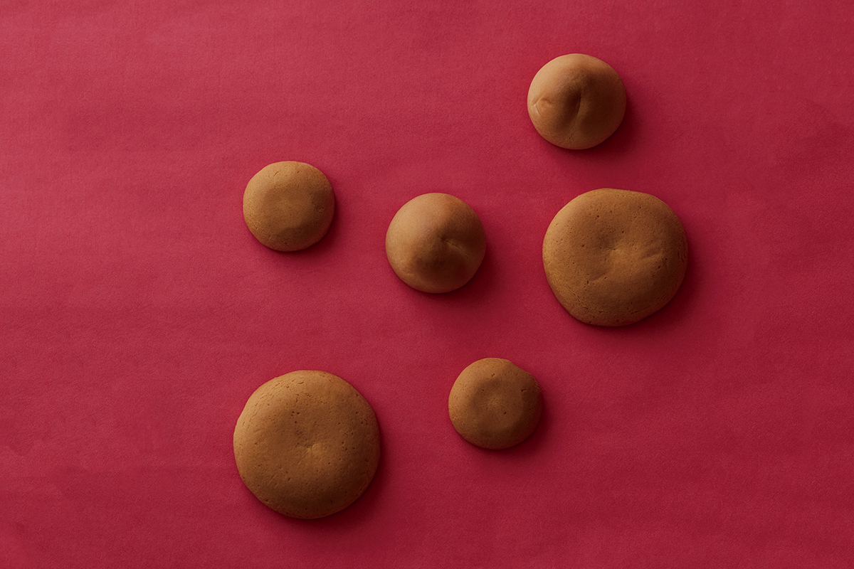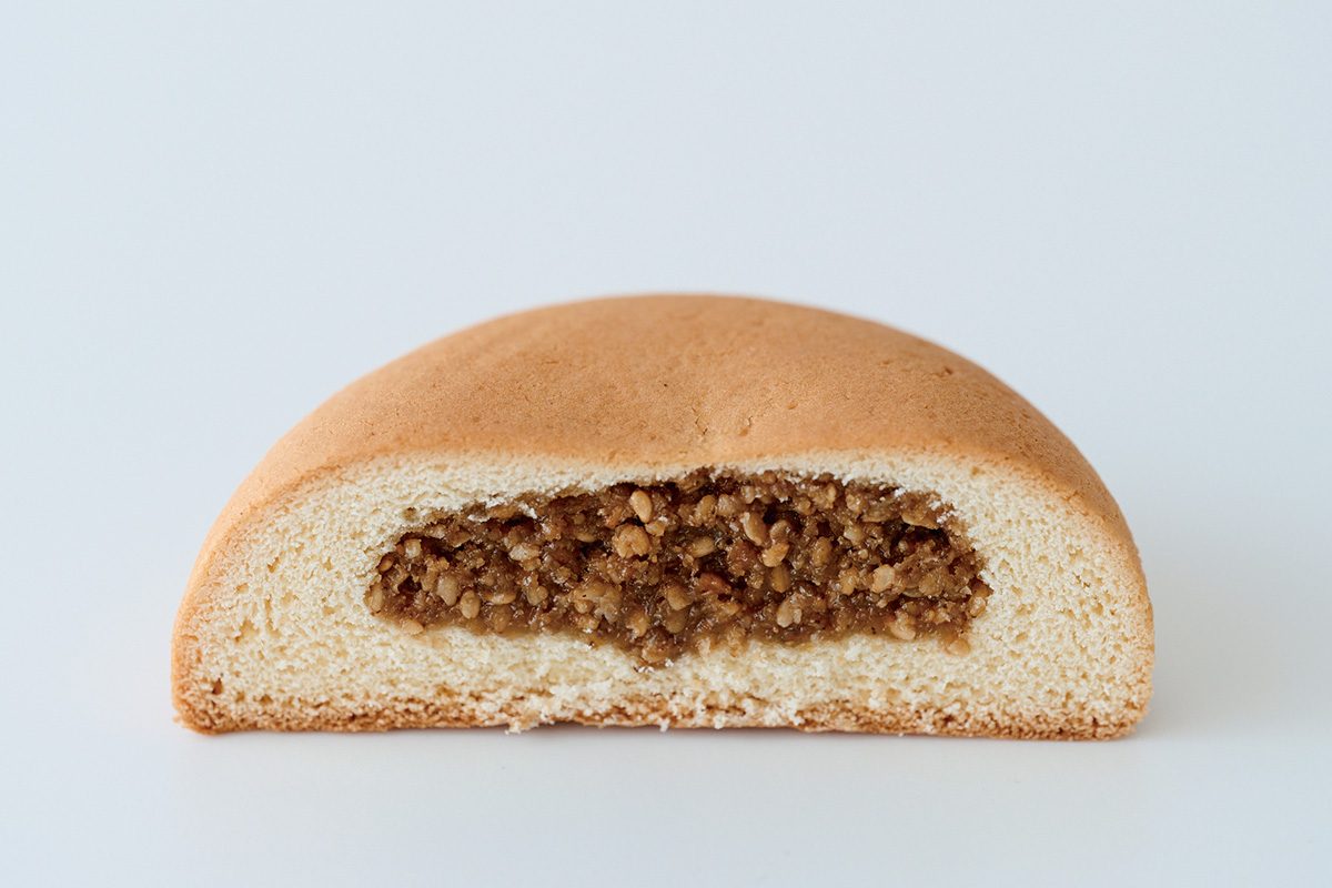 こんぺんは中華菓子の光餅が由来といわれ、小麦皮に煎り白ゴマと砂糖、県産黒糖というあんを詰めた滋味深い伝統菓子。桃菓子は小麦皮でゴマを混ぜたこしあんを包んでいます。桃形は中国からの影響でつくりはじめたと伝わっているそう。桃は百々とも記されることから、百年前の先祖から続く百年先の子孫の繁栄を祈るという意味が込められています。どちらも旧暦行事に食される祝い菓子。しっとりと香ばしく絶妙な味わい。