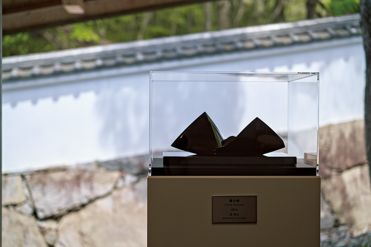 また「雲の砦」は、川添善行氏設計のエントランス棟「おやねさん」のライブラリーに。ガラス越しに見える壁の向こうには「流れ坂」があるというロケーション。作品の台座の制作にも桜製作所がかかわった。’24年秋には流の長女で画家の流麻二果氏の個展を四国村ギャラリーで開き、親子共演の実現も果たしたのだった。