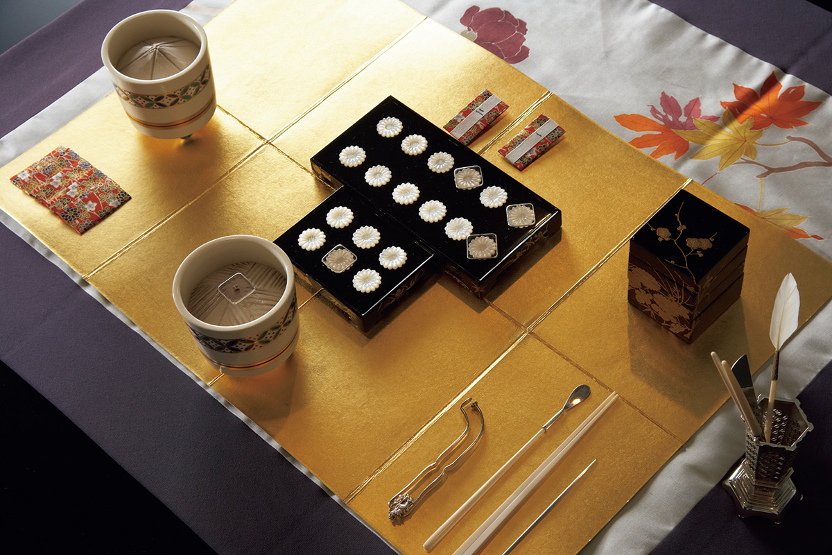後に香道には、和歌に通じた古典学者・三條西実隆を香祖とした御家流と、志野宗信を初代とする志野流、ふたつの流派が誕生した。ちなみに御家流の特徴は、華麗な蒔絵の香道具や伸びやかで闊達な作法。まさにお香に遊ぶ公家文化を反映していた。対して志野流は、規範の中に自らを律する精神鍛錬としてのお香。こちらは武家文化を体現するものだった。