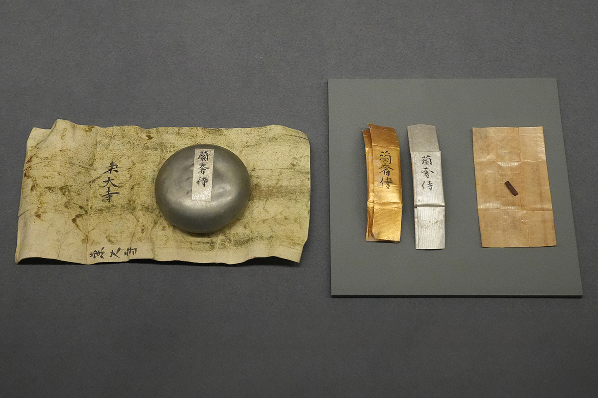 東大寺・正倉院御物。目録上の名は「黄熟香(おうじゅくこう)」。全長156㎝、最大径40㎝以上の大きさ。蘭奢待の銘は室町時代からその名で呼ばれる。截香した足利義政、織田信長、明治天皇の名がその箇所に付けられている
