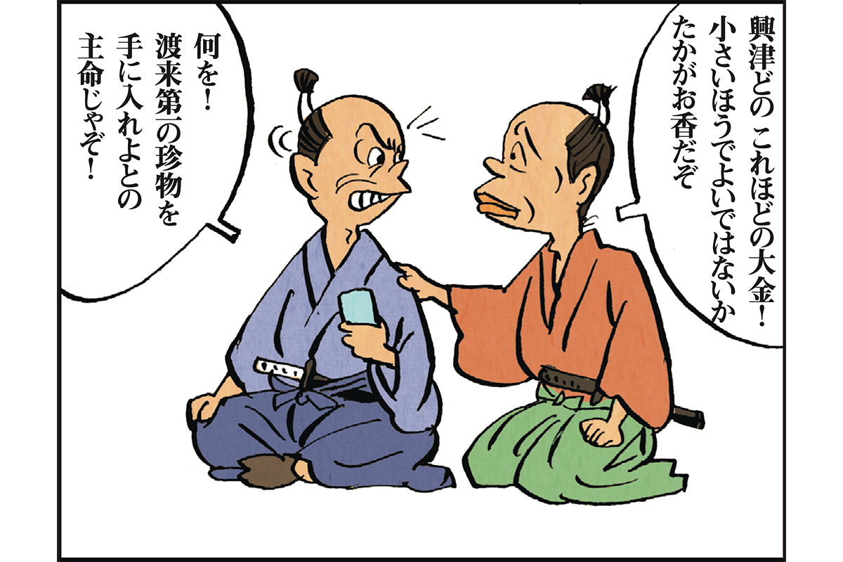 伽羅といえば、仙台藩の伊達政宗と小倉藩の細川忠興が一本の伽羅争奪を繰り広げた「一木四銘(または一本三銘)」の逸話も有名だ。同輩を殺してまでして主命の香木を入手した侍の忠孝と忠興の温情は、江戸の随筆『翁草』で描かれ、伽羅の価値とともに、その武士道の世界観に江戸市民はいたく感動したという。
