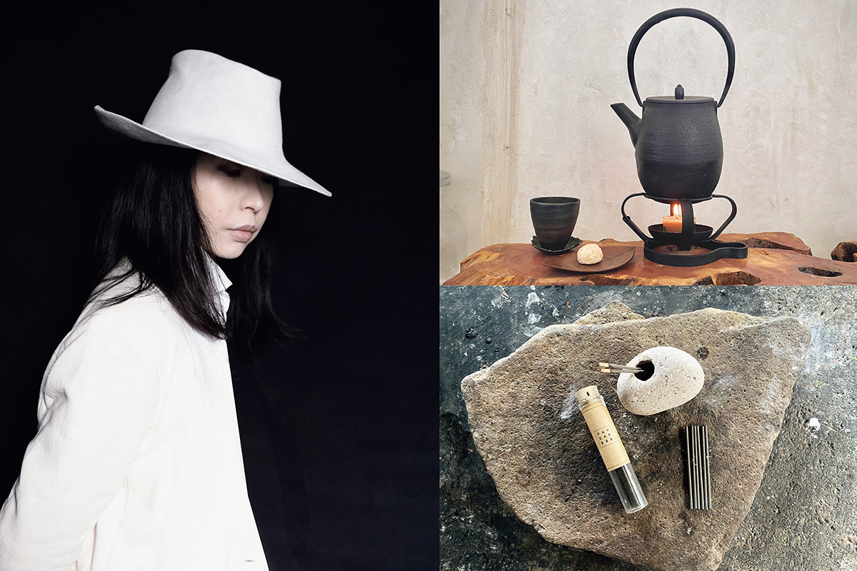 戸村さんは、香りだけでなく、香りを楽しむための道具にもこだわりが。「アロマディフューザー、あんどん、ティーウォーマーにもなる『入相灯』は、コンサルティングをしている宿『汀渚 ばさら邸』の周年記念でつくったアイテム。周年のテーマが“光”だったこと、能登の震災などもあり、防災にも活用できるものにしたかったんです」