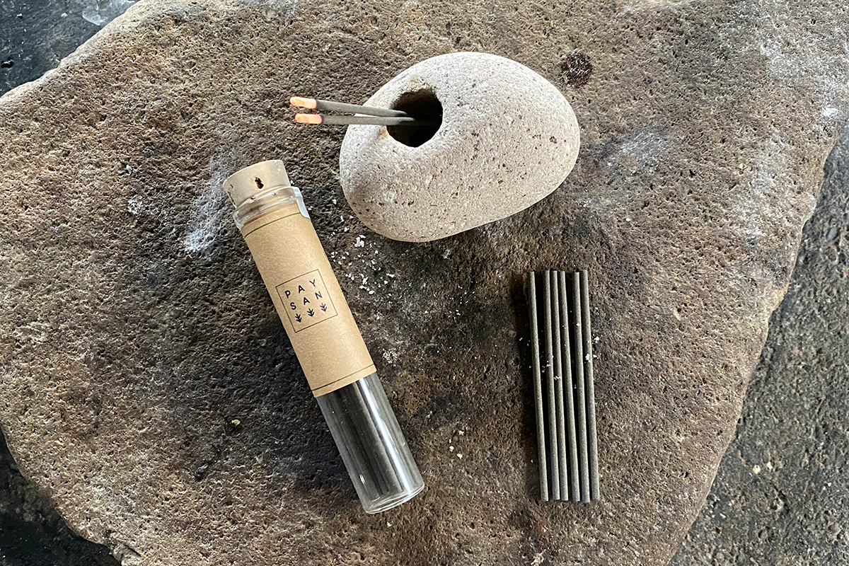 石川県で開催された自然栽培のイベントで出合った「植物△線香 LO-1 CLEAR」も愛用中。農業と福祉の連携で社会課題を解決するハーブ農園「ペザン(PAYSAN)」の自然栽培ハーブと、石川県の「月月」がプロデュースする「植物△線香」がコラボレーションしたアイテム。