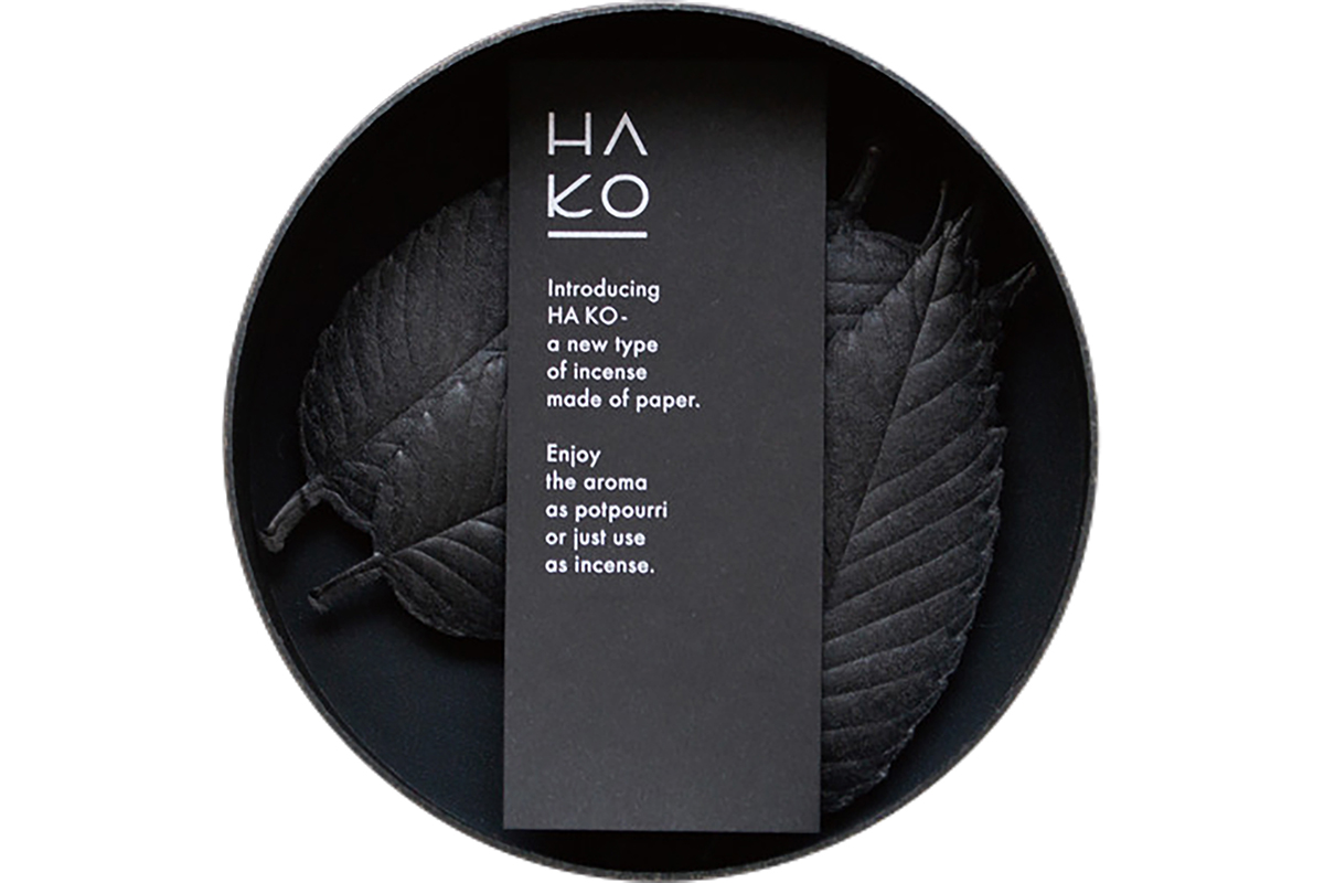 ギフトにおすすめと教えていただいたのは、「HA KO Special Black Box Relax」。お香の発祥の地として知られる兵庫県淡路市で製造されている、葉っぱのかたちをした紙のお香だ。