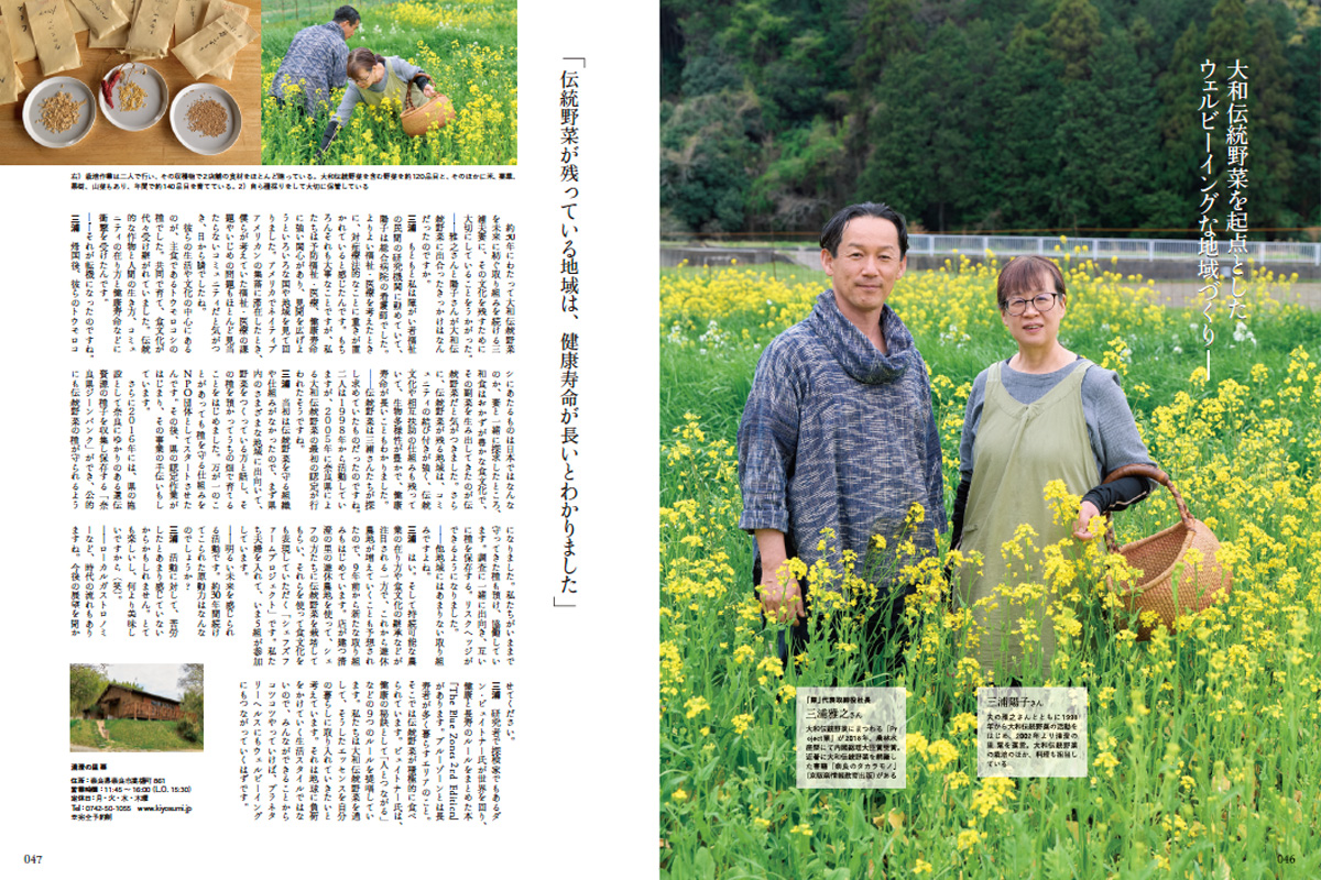 京都の京野菜、東京の江戸東京野菜など、日本には各地で受け継がれている伝統野菜という文化があります。今回は、奈良の伝統野菜・大和伝統野菜を約30年にわたって守り育て、レストラン「清澄の里 粟」などでその魅力の発信を行う三浦雅之さん、陽子さん夫妻にインタビュー。これまでの活動を通して見えてきたこと、そして伝統野菜があるローカルの未来とは? ニッポンの“農”の在り方のヒントに迫ります。