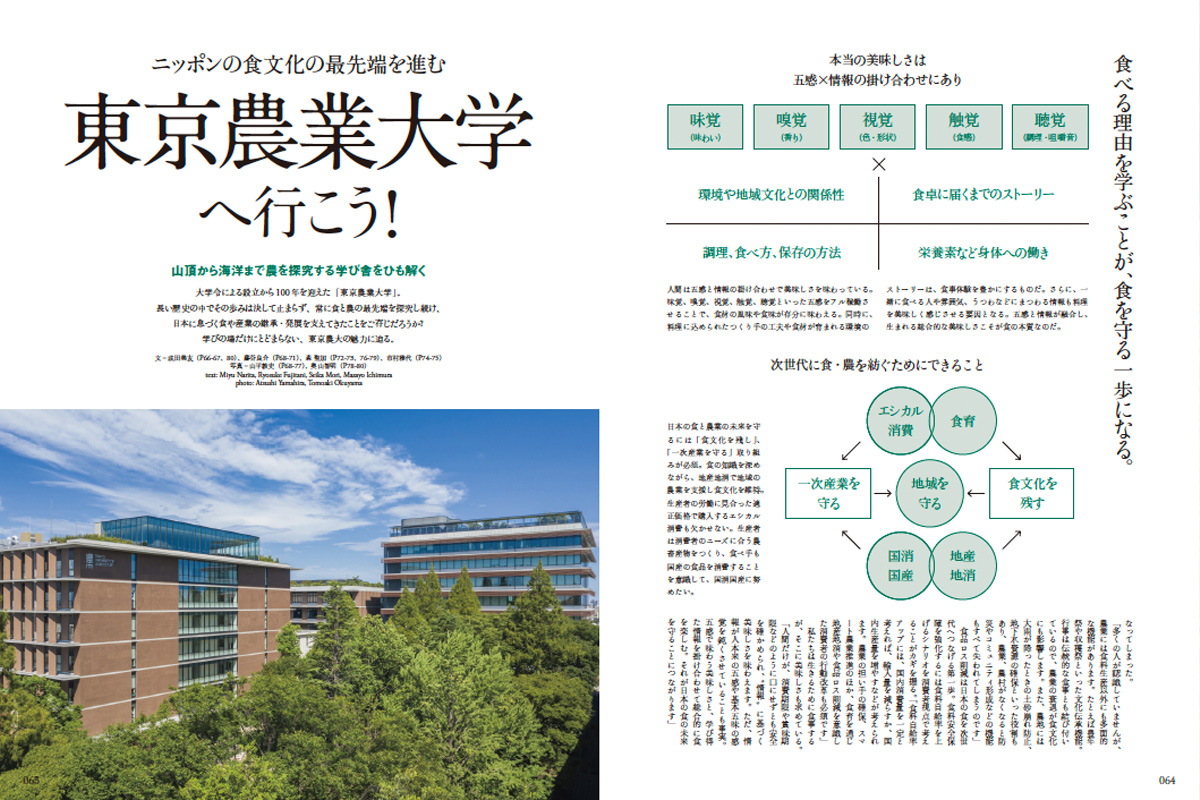 大学令による設立から100年を迎えた「東京農業大学」。常に食と農の最先端を探究し続けてきた同大学は、3つのキャンパスを中心に亜寒帯から亜熱帯までを研究フィールドにして、日本に息づく食文化や産業の継承・発展を支えてきました。長い歴史の中で決して歩みを止めず、学びの場だけにとどまらない東京農大の魅力を、歴史、施設、研究内容など様々な視点からお伝えしていきます。