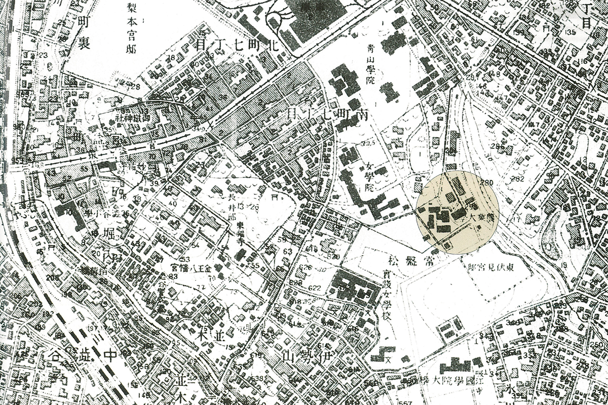 大日本農会附属東京農学校となった1897年、暴風雨で大塚窪町の校舎が倒壊。教頭の横井時敬が大日本農会の幹部らに働きかけ、翌年には東京府豊多摩郡渋谷村の常磐松御料地の一画(上地図の円の範囲)に移転した
