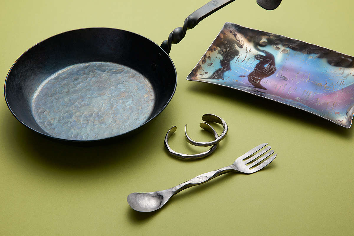 兵庫県三木市。3代続く鍬製造元「安隨製作所」が手掛ける新ブランド。槌目やひねりをキーワードに、鍛冶職人ならではの技を生かした鉄製キッチン&インテリア雑貨を展開する。近年はアクセサリーなどの小物類にも力を入れる。