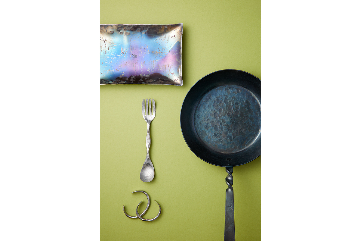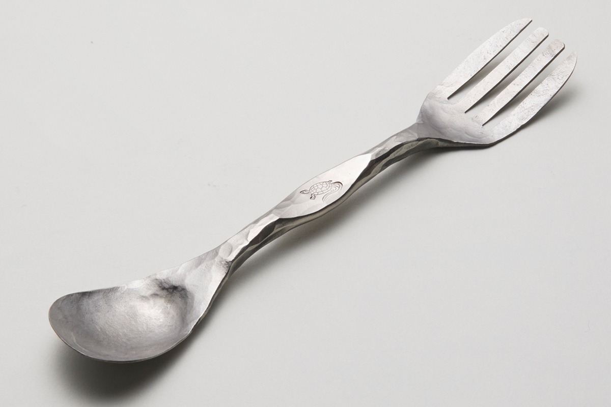 現状にあぐらをかかず、よりよいものを追求する安隨さん。近年は鉄以外のアイテムにも力を入れていて、中でもチタン製のフォークスプーンは自信作のひとつ。