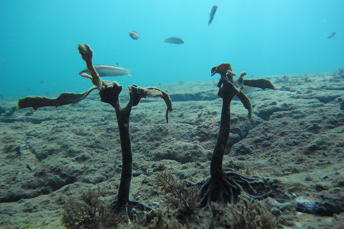 海藻は光合成によって水中の二酸化炭素を吸収し、炭素を固定。海藻が死んだ後もその炭素は海底にとどまるので地球温暖化抑制に貢献。