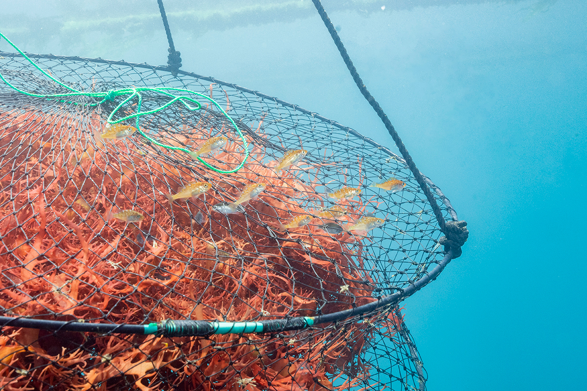 海藻の表面には小型生物が生息し、餌となるだけでなく、産卵場や幼仔の生育場を提供するなど、藻場は多様な生物種の保全の要となっている。
