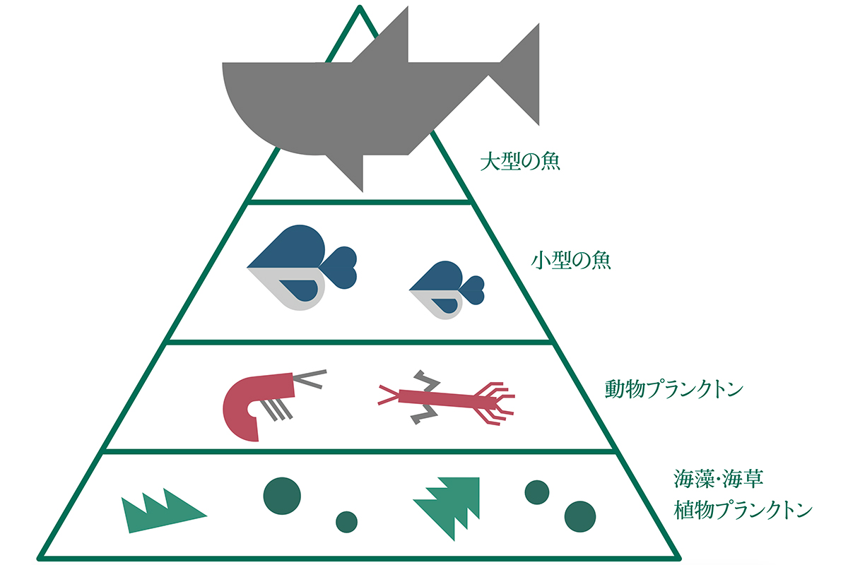 藻場は沿岸生態系の基盤として重要な役割を果たす。たとえば海藻の表面にはケイ藻やヨコエビなどが豊富に生息し、小魚や甲殻類の餌となり食物連鎖を支える。さらに、スズキやイカが産卵場所として利用し、隠れ場所として稚魚の成育を助ける。生態系ピラミッドの土台として藻場があることで、小魚から大型魚まで多様な生物を育み、生物多様性の維持につながっている。