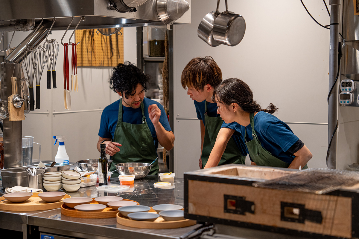 研究・生産だけでなく、消費を促進する活動も多岐にわたる。世界最高峰のレストラン「noma」のDNAを受け継ぐ「INUA」でスーシェフを務めていた石坂秀威さん率いるテストキッチンでは、海藻のイノベーティブな料理や、斬新な海藻発酵調味料など、新しい食体験を創出。