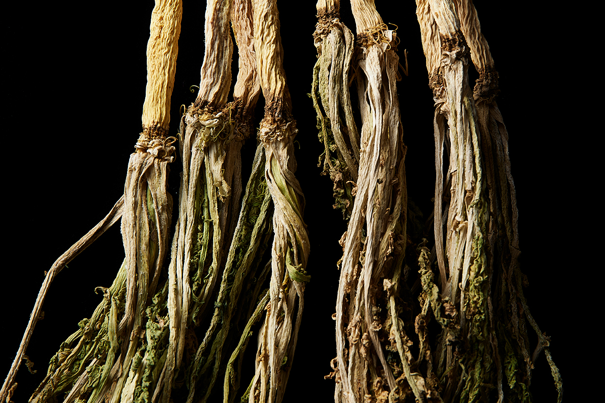 山形県鶴岡市の小真木大根(生産者:斎藤政俊さん)。藁を通して干し、はりはり漬けに