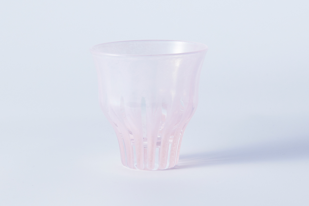 「格子の隙間から外の光を通すことで、暗くなりがちな空間を明るく保つ連子格子に趣深さを感じて。renの楽しみ方も同様で、うつわを連子格子に見立ててスリットから透ける飲み物や料理を楽しんでほしいです」と花岡さん。本展では、高温で溶けたガラス特有の「柔らかさ」を重力で垂れたようなかたちで表現した新作にも注目だ。