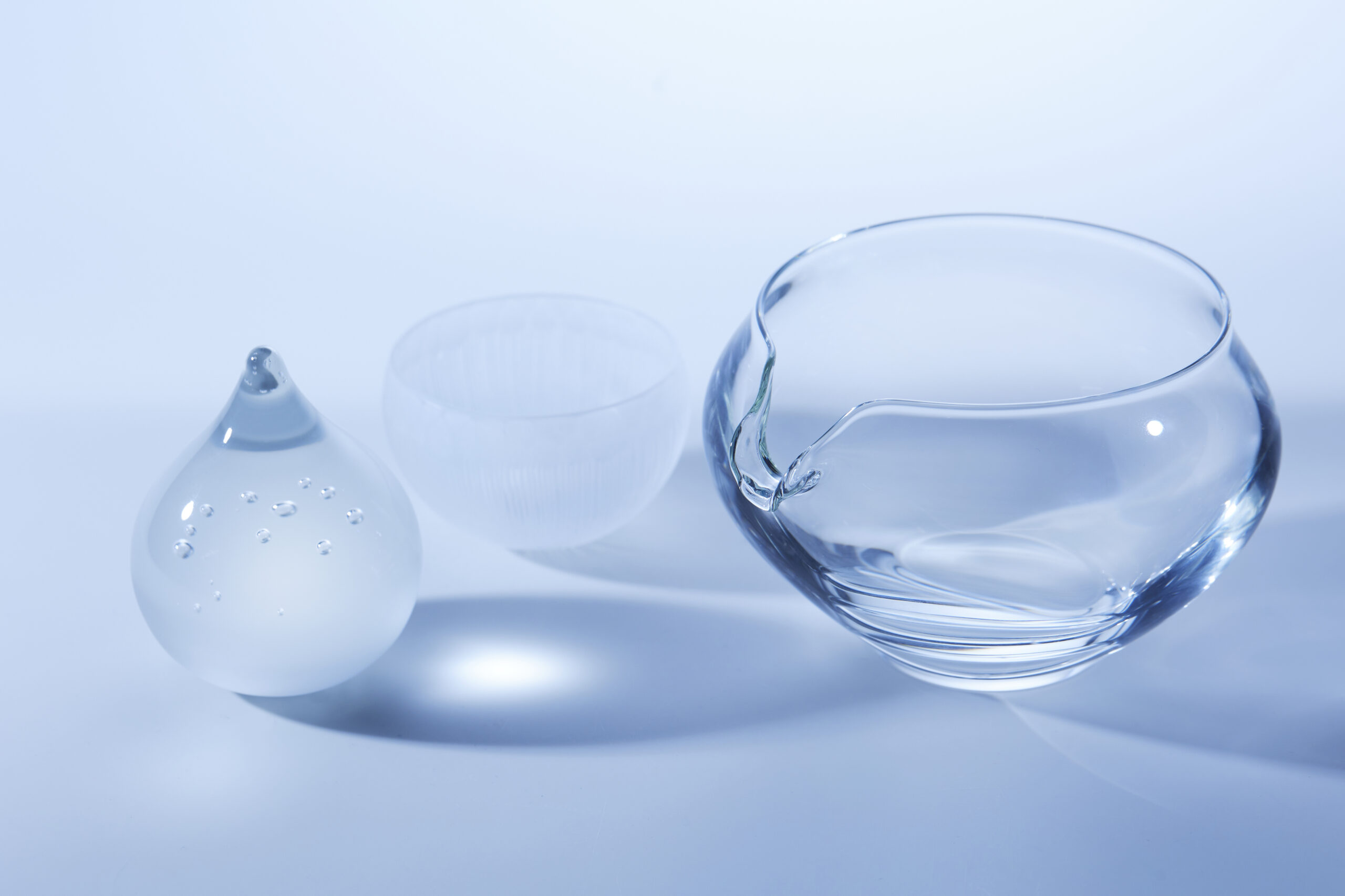 ガラスに触れることを必要最小限にとどめ、熱と遠心力でガラスが自由に動く様子をそのまま生かした。