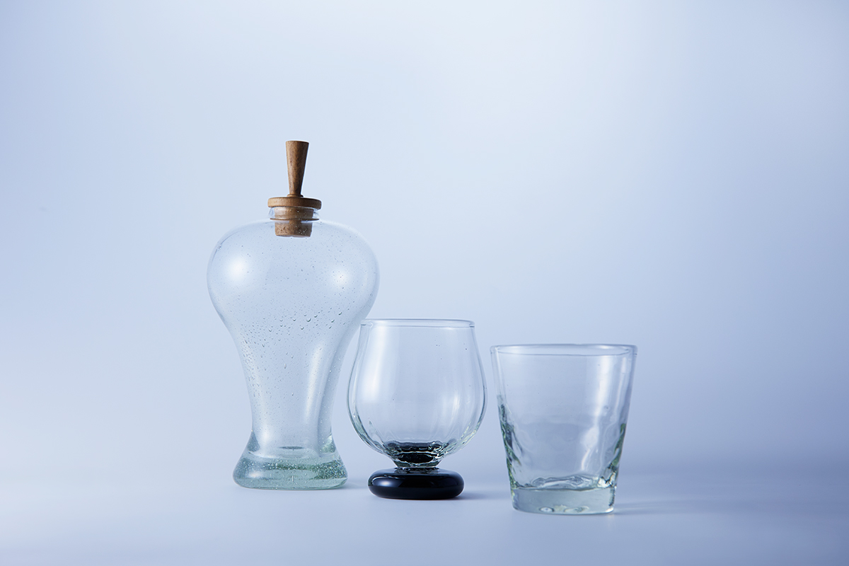 地元・茨城の酒瓶を再生し、泡やゆらぎのある素朴な表情を引き出すガラス作家・前嶋洋明さん。実直な手仕事から生まれる日用品のうつわが、暮らしに健全な美しさを届ける。本展初参加となる前嶋さんのガラス作品をご紹介。
