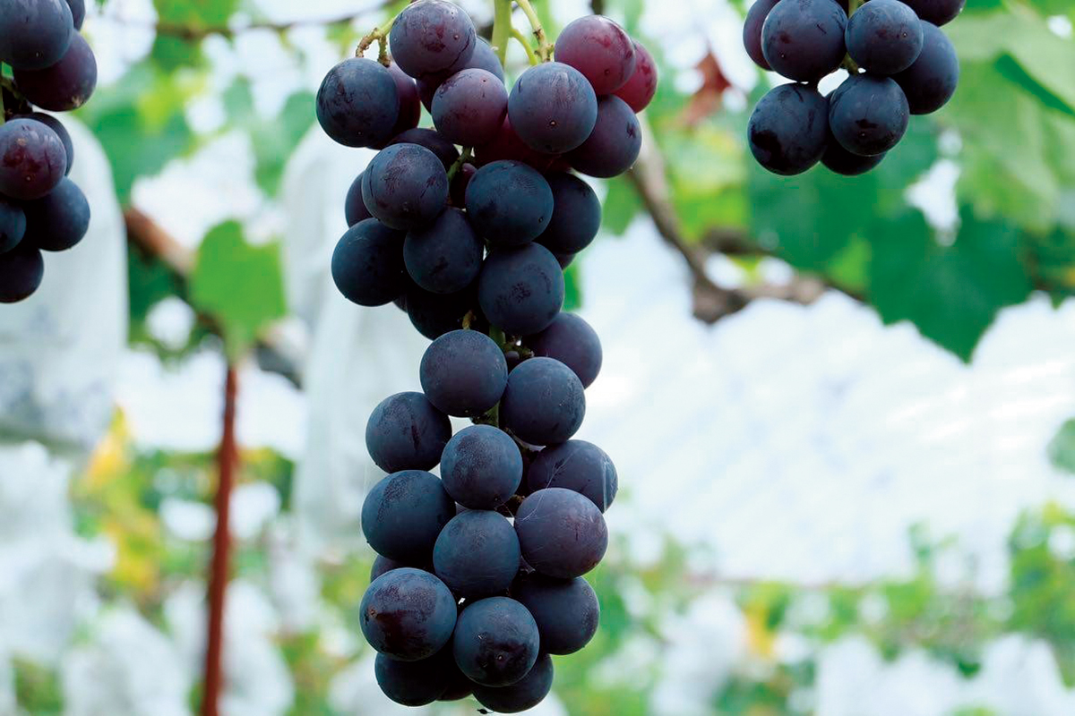ホルモン剤による種なし処理を施していないため、自然本来の甘みが凝縮。「自分たちにも環境にも負荷がかからないよう、結婚を機に無農薬にシフト。間引いた未熟ブドウを果汁にするなど、無駄なく活用しています」