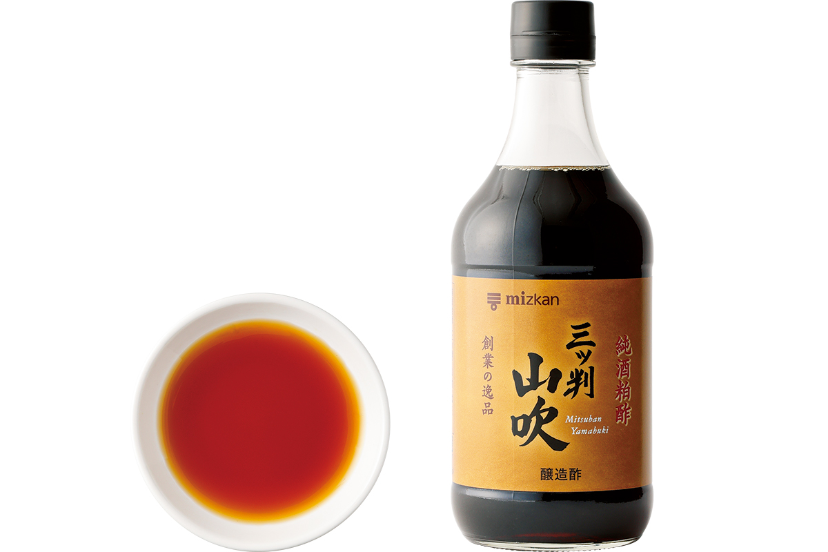 創業の地・知多半島で200年以上前から製造してきたミツカンのフラッグシップと呼べる一本。酒粕を熟成させてつくられる。「旨みも甘みも強い赤酢なので、これ一本で三杯酢のように使えます。これでポークビンダルーをつくるのが好きですね」