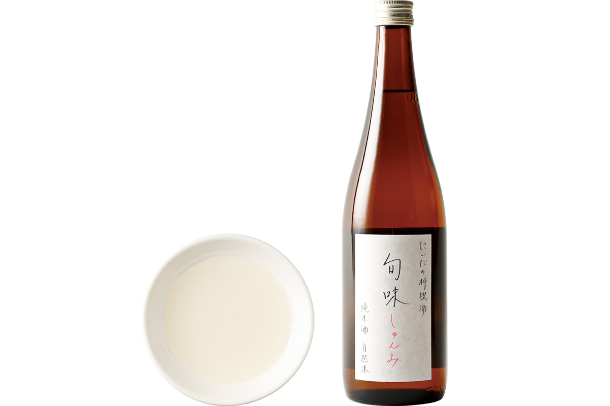 自然米だけで仕込んだ純米料理酒。醸造発酵により天然アミノ酸を増やしているため旨みが強い。「一般的にはアミノ酸が増えると辛くなりがちですが、旬味は軟らかいまま。貝の酒蒸しに使うと、塩や醤油を使わずとも、これだけで味が決まります」