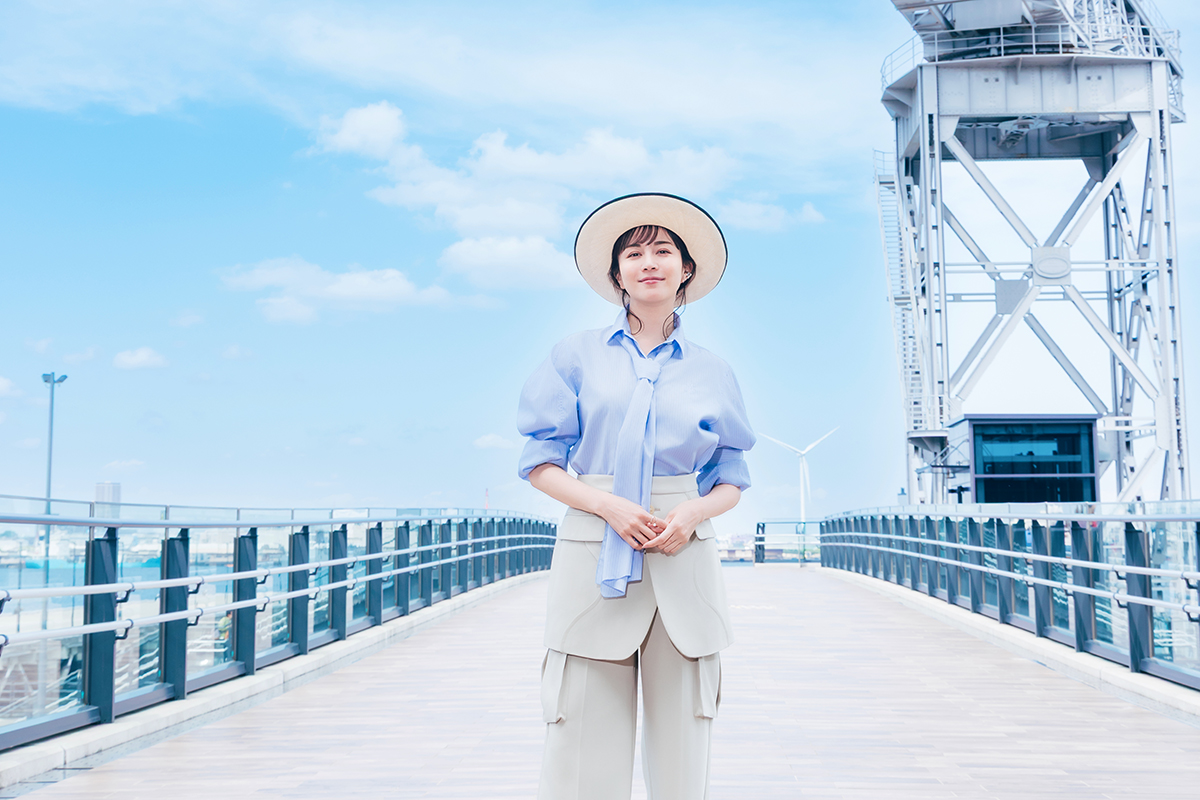 俳優・比嘉愛未ひが まなみさんは潮風を身体にゆき渡らせるように深呼吸をしてから「ふ頭を見ていると、旅がはじまるワクワク感が伝わってきますね」と笑顔になった。眼下には、横浜の海と大型客船。これからどこの国へ発つのだろう。「人生のターニングポイントにはいつも旅があった」という比嘉さんに沖縄県世界自然遺産大使としての活動や、海の旅、島の旅についてうかがった。