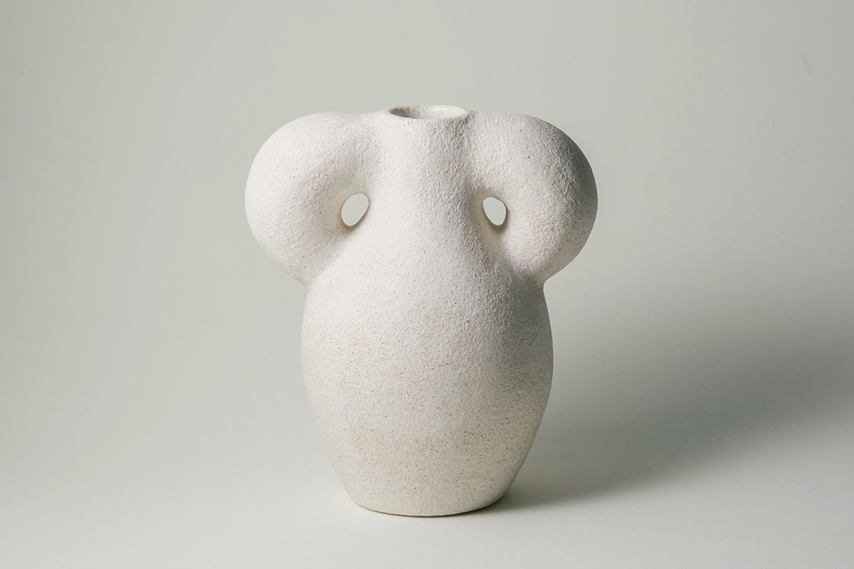 まるで土偶!? 想像力をかき立てる、愛嬌たっぷりの花器。持ち手が左右に付いているので安定感がある。カラフルな花を一輪挿すだけでも絵になる。オブジェとしても使える。