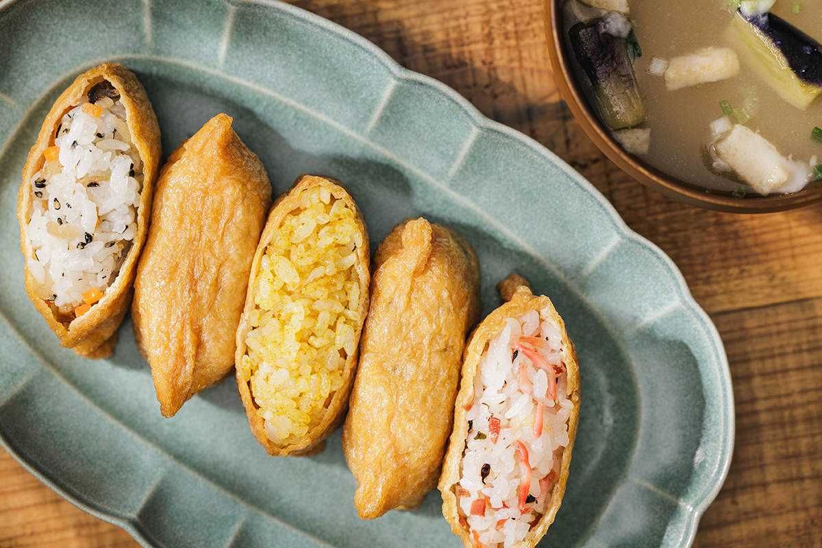 夕食のメインメニューはボリューム満点のLUCY豚汁。魚や卵、山の幸の副菜も揃う。朝食はホテル内の24時間営業している、ラストコンビニで購入できる。ラストコンビニでのおすすめは黒ゴマ、わさび、カレーなど5つの味が楽しめる「いなり寿司」!
