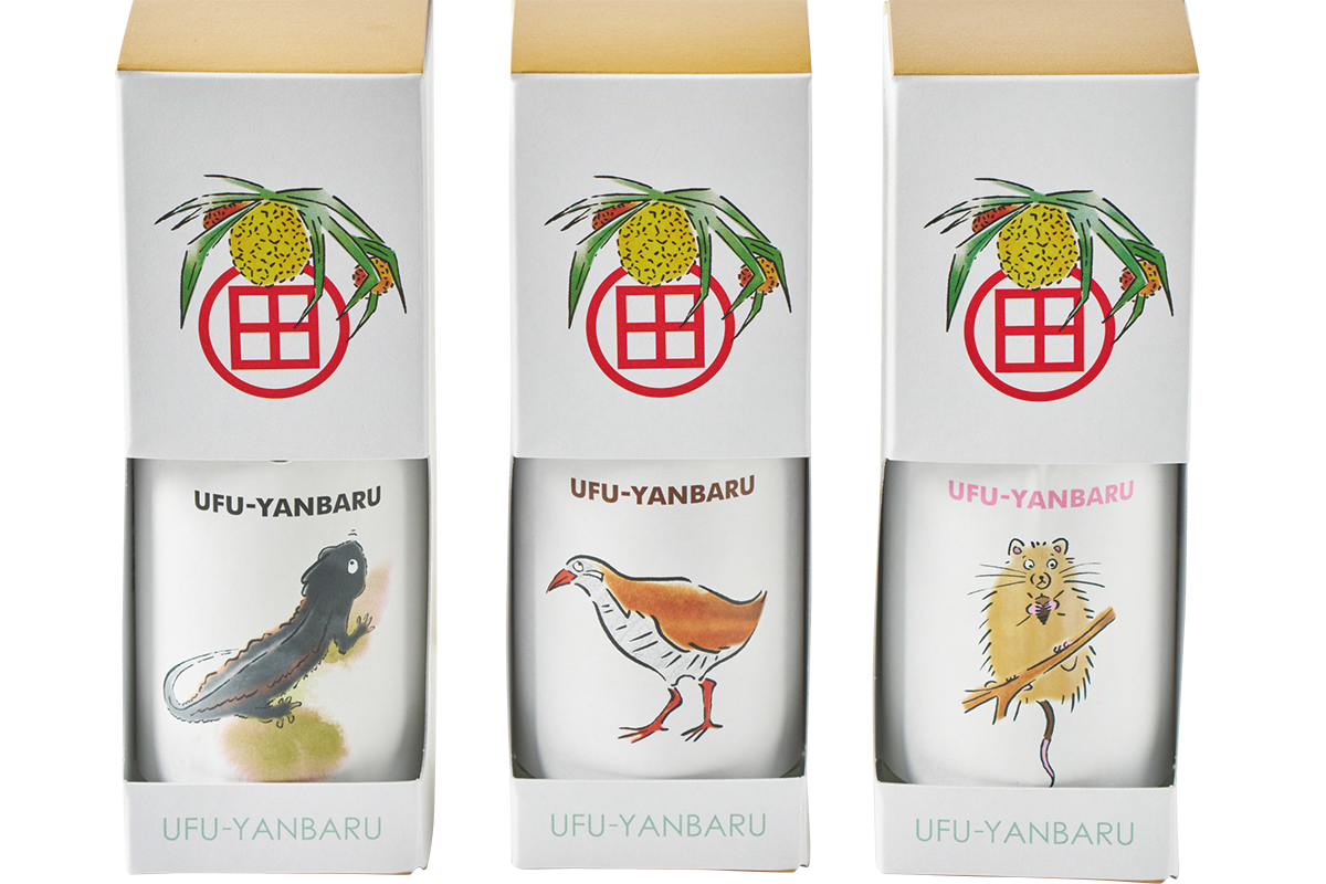 やんばるの天然水で仕込んだ、15度のまろやかな泡盛。180㎖の手軽なミニボトルはお土産にぴったり。ヤンバルクイナ、イボイモリなど、世界自然遺産の森で暮らす10種類の生き物をあしらったシリーズ。どれにするか悩む時間もまた楽しい(各660円)。