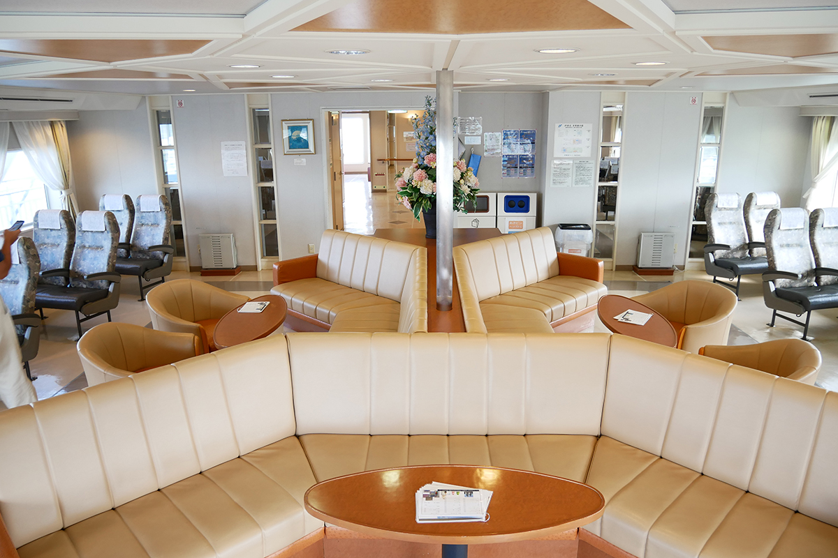 1時間の船旅はドライブの狭間の休憩にも最適。船内では出来たての伊勢うどんも堪能できる