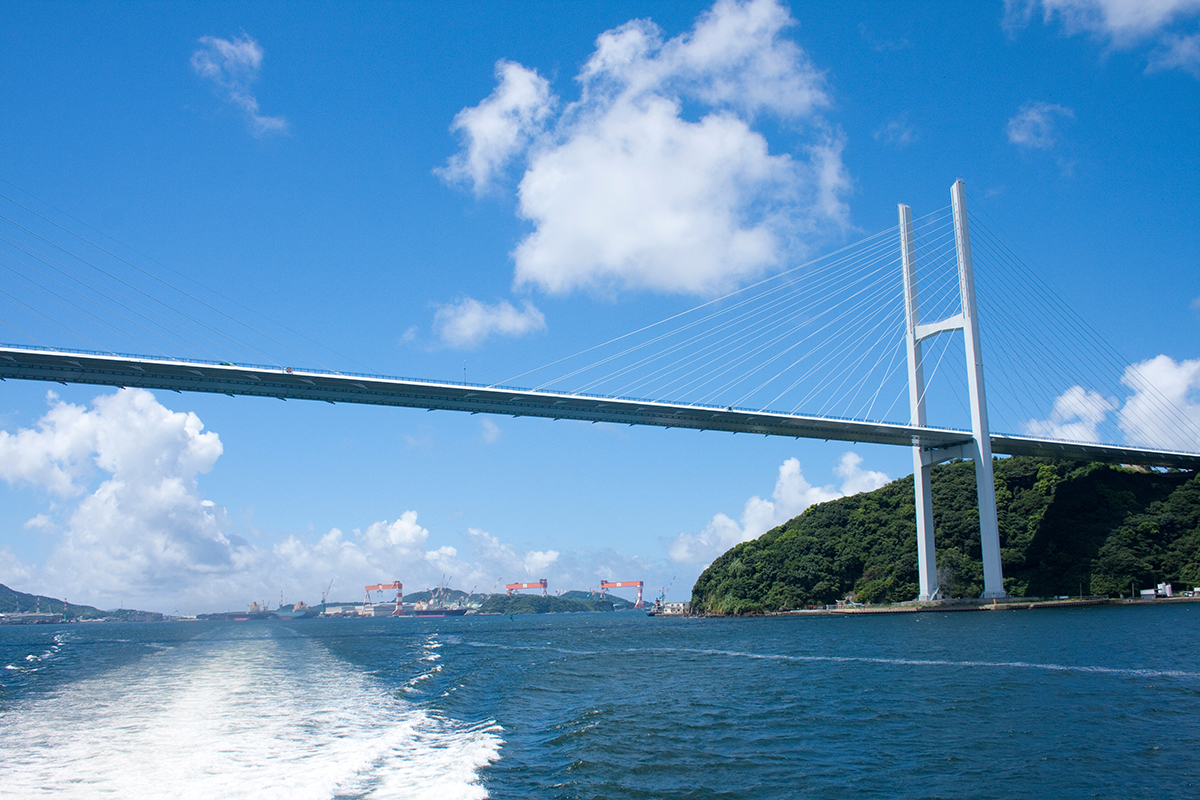 博多港発「野母商船」の航路は福岡市内の夜景から。玄界灘を渡ると、聖地・中江ノ島を間近に望み、生月大橋をくぐると、「西海国立公園」の若松瀬戸にリアス海岸の絶景が広がっている。