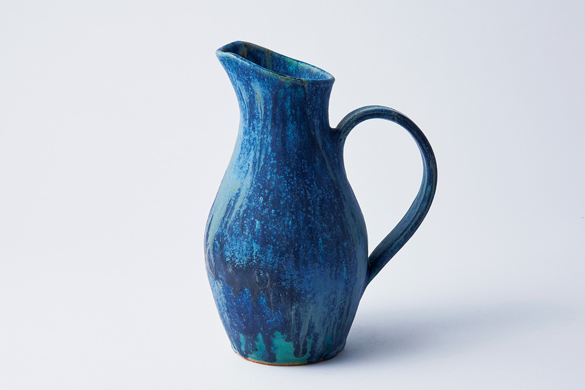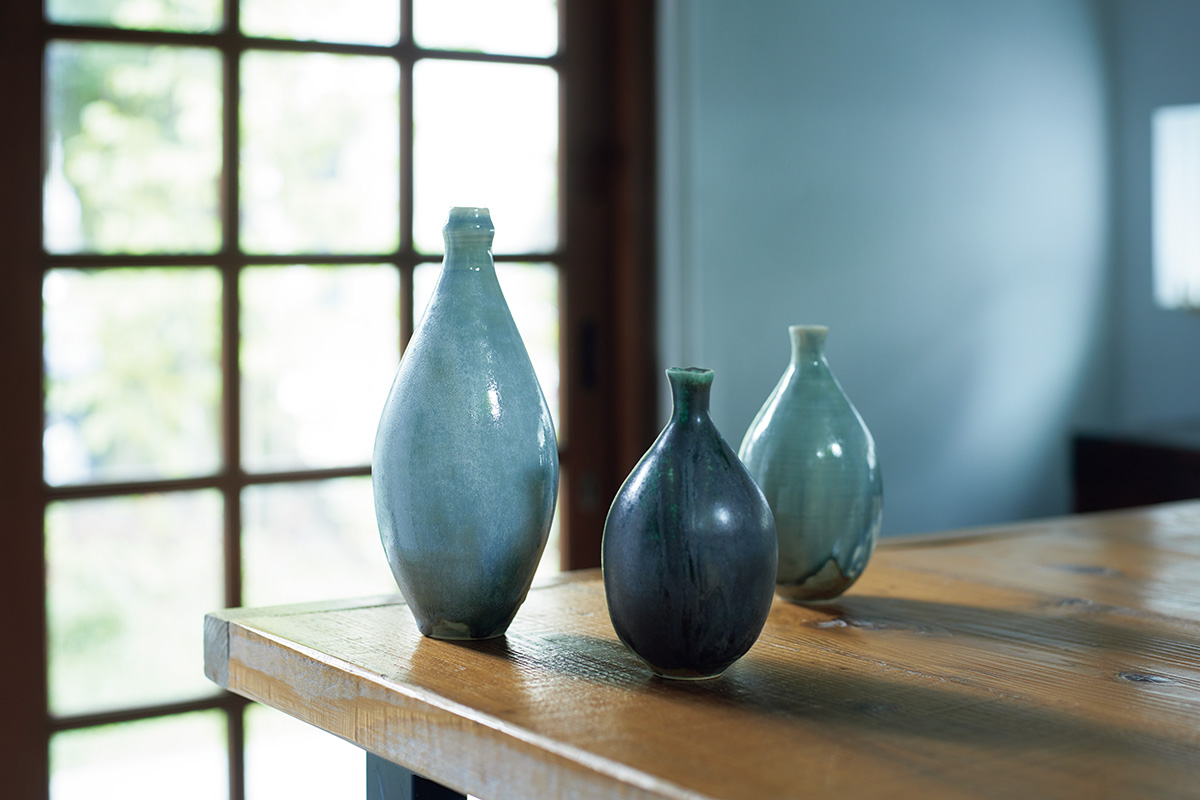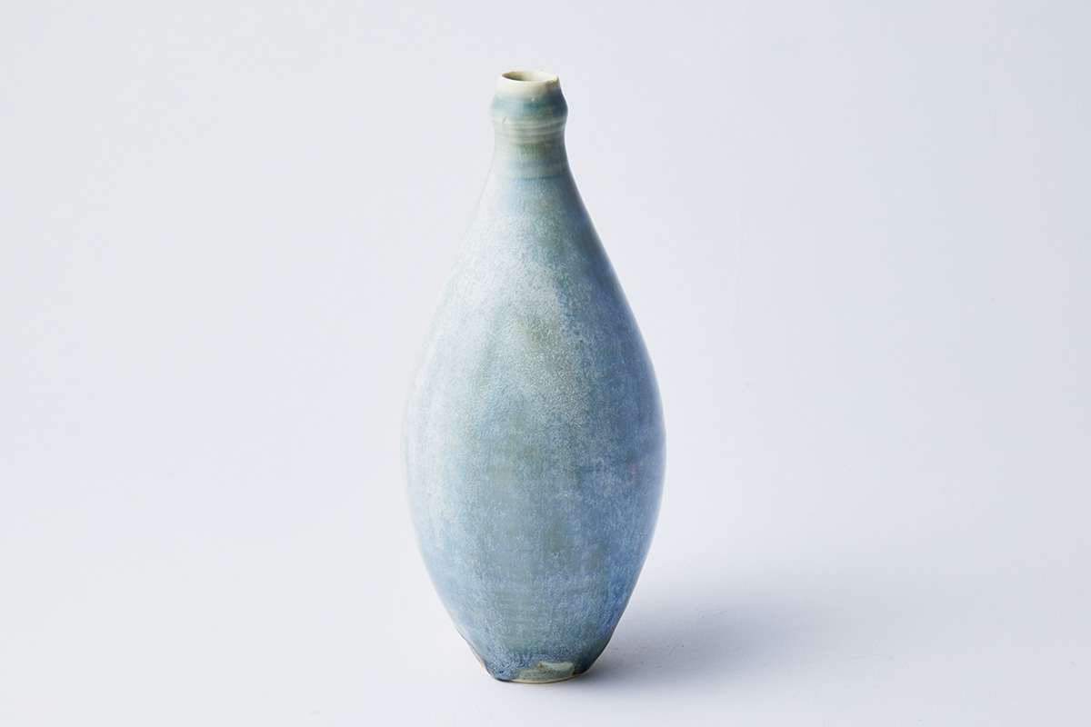 2種の釉薬を用いて、霧がかったような幻想的な景色を表現。シリーズの中でも光沢ある佇まいで、色やフォルムが異なる花器を複数並べた際にも、美しくまとめ上げてくれる。