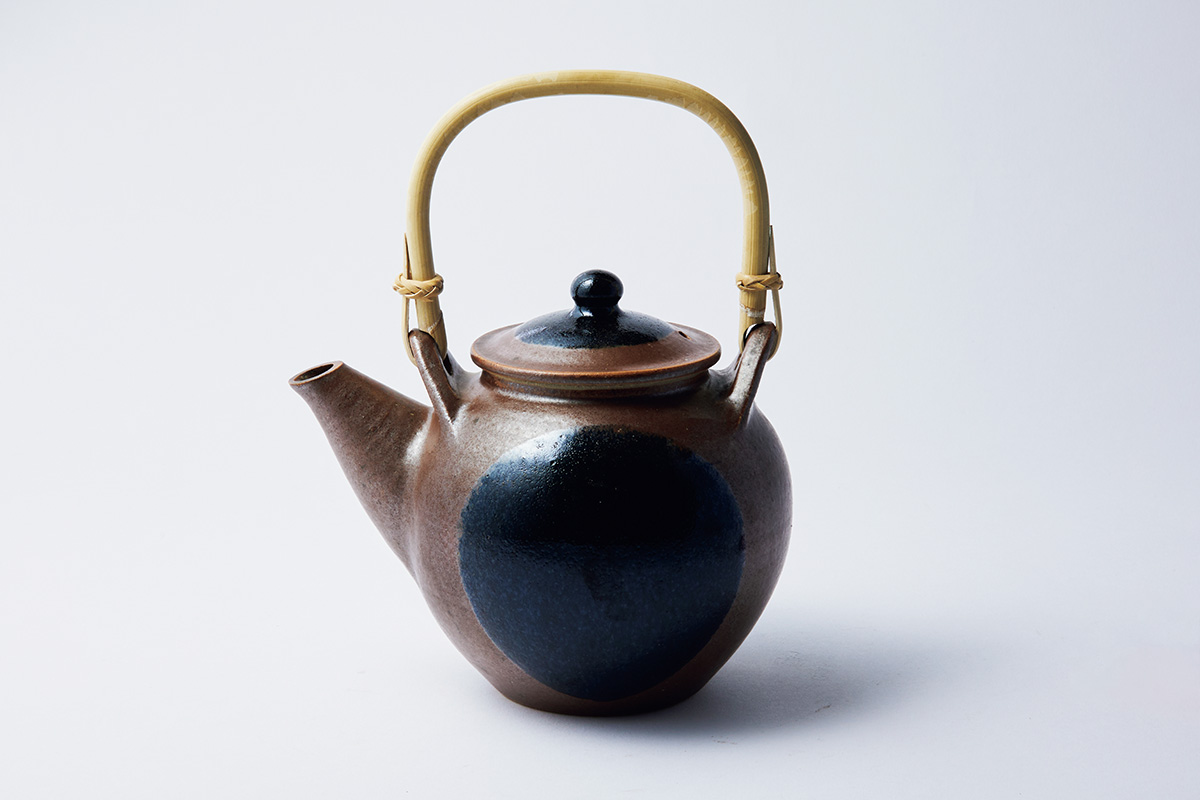 丸紋がかわいらしい土瓶。ぽってりとした丸みのあるフォルムと竹の持ち手のバランスが絶妙。湯切れのよさにこだわり、注ぎ口の角度を微妙に変えながらいまなお進化し続けている。