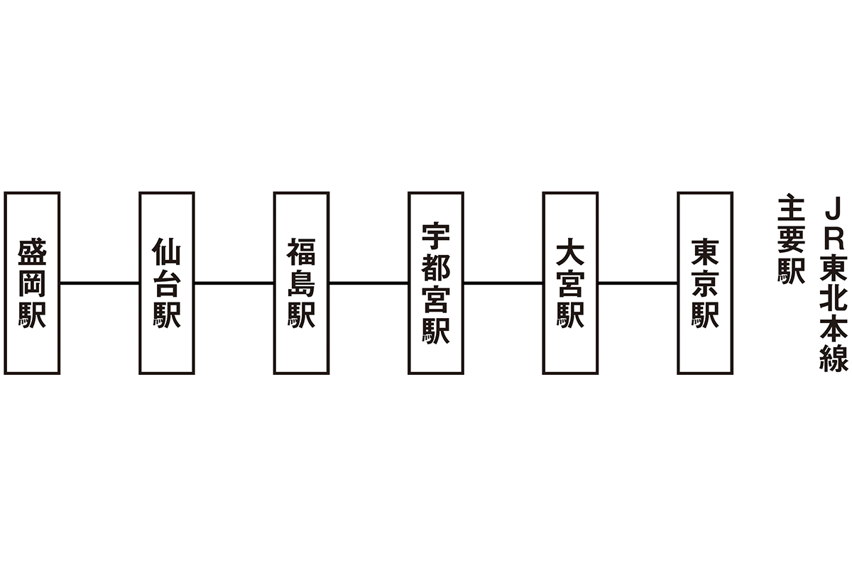 東京から盛岡までを結ぶ東北の大動脈。「SATONO」など個性豊かな観光列車も走る。栃木県塩谷郡の宝積寺駅は2008年に一新。木製格天井と大きなガラス開口部をもつ明るい駅舎は、世界的建築家・隈研吾氏によるデザイン。