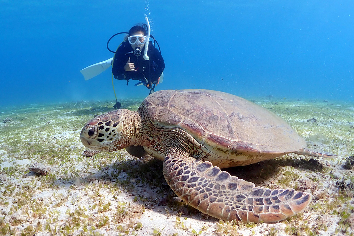 奄美の大自然と遊ぶアクティビティに、電子ギフトを利用するのもおすすめ。ウミガメが多く生息する笠利町に店舗を構えるダイビングショップ「ネバーランド」では、ウミガメと一緒に写真撮影もできる「ウミガメ体験ダイビング」に加え、さまざまな体験ダイビング&シュノーケルツアーを用意している。シャワー室、更衣室、船は使い勝手がよく清潔で、ガイドも優しくフレンドリーだ。