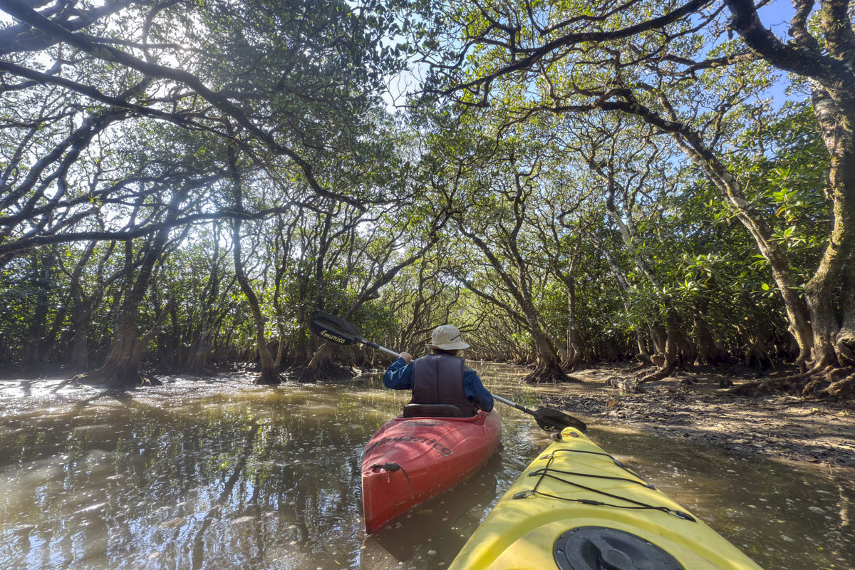 亜熱帯の森と蒼く澄んだ海、希少な動植物など、「東洋のガラパゴス」と呼ばれる奄美大島の豊かな自然と出合える多彩なツアーを展開するのが「アマニコガイドサービス」だ。マングローブをカヌーで漕ぎ進む「マングローブカヌーツアー」をはじめ、SUP、MTB、釣りなど、たくさんの「奄笑(あまにこ)」が見つかるだろう。