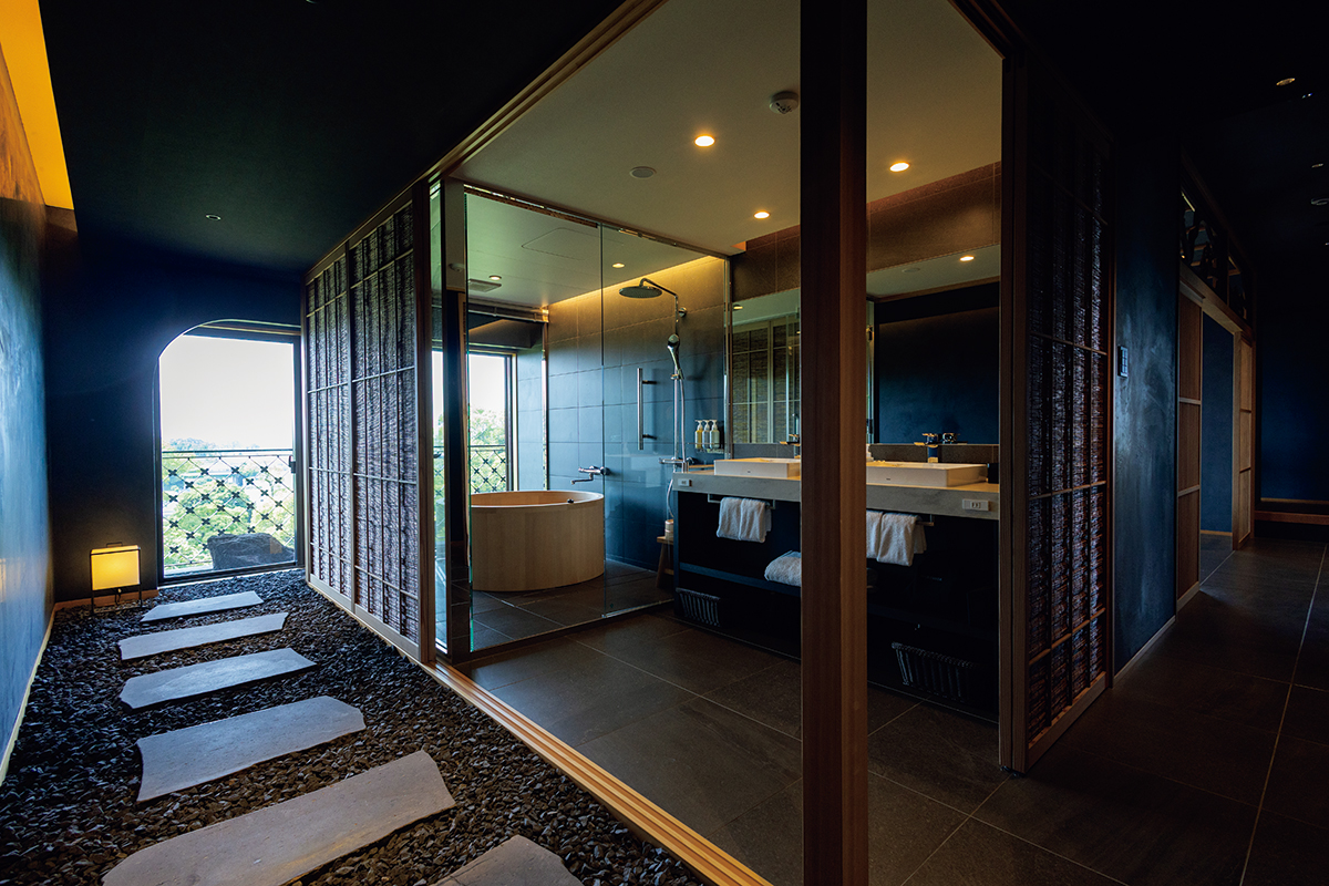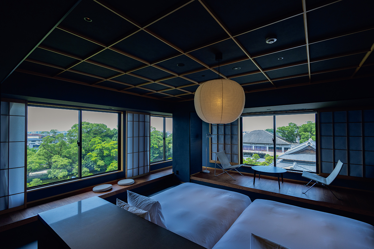 「客室からどう文化財を楽しんでいただくかを考えました」と立花さん。贅沢な文化財ビューを楽しめる「特別室 黒松」などの客室も新設。さらにスタッフ全員で研修を重ねて、一人ひとりが御花の語り手に成長。100年先の未来に、この文化財を「永遠のこころのよりどころ」としてつないでいきたいと思いをひとつにする。