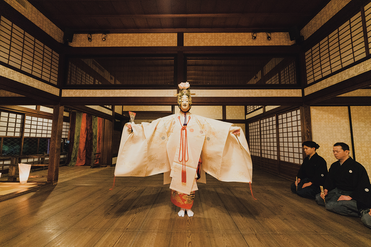西洋館、御居間などの建築物も文化財に指定されている。ビジターも見学可能だ。また、大広間での能舞台も復活。屋敷内の能舞台のため、お客との距離が近く、すぐそばで舞を見ることができる。