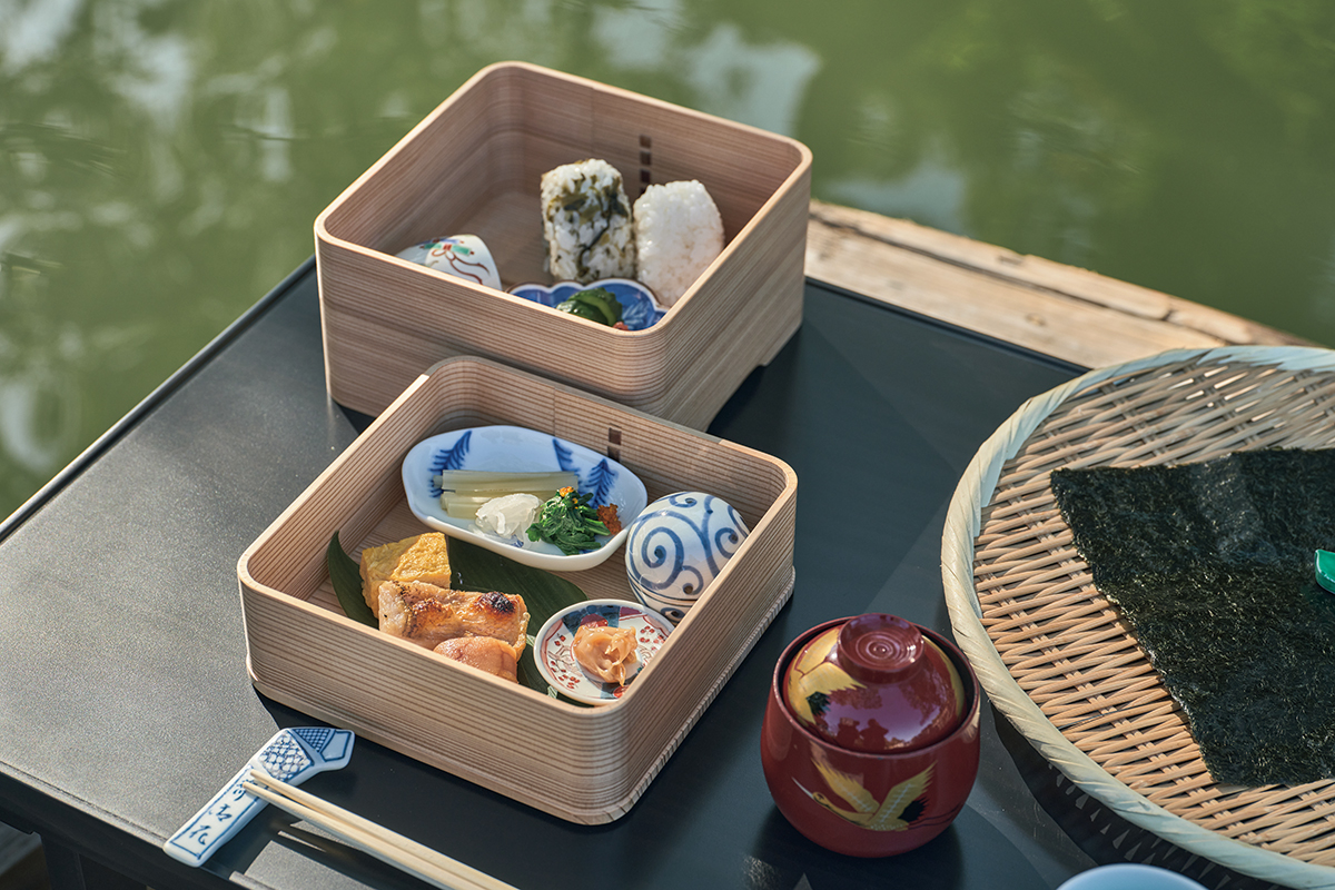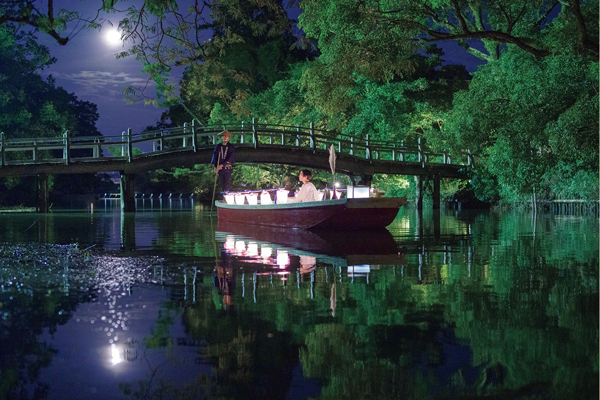 「お舟で朝食プラン」では、朝の清らかな雰囲気でお殿さま気分を楽しめる。夏は花火、秋は月見、冬は団子などのプランを企画。時間や季節を変えることで、年に3度4度と乗船する人も増えた。