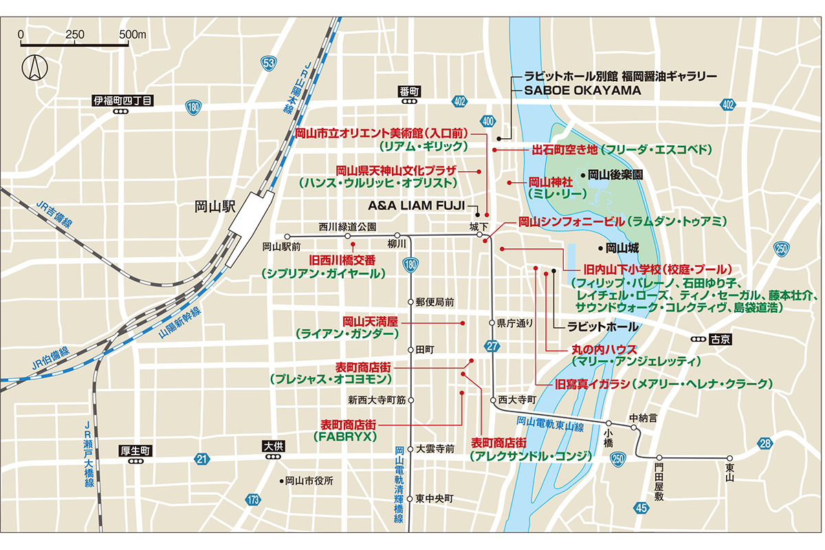 展示会場|旧内山下小学校、岡山県天神山文化プラザ、表町商店街、ほか岡山市内各所