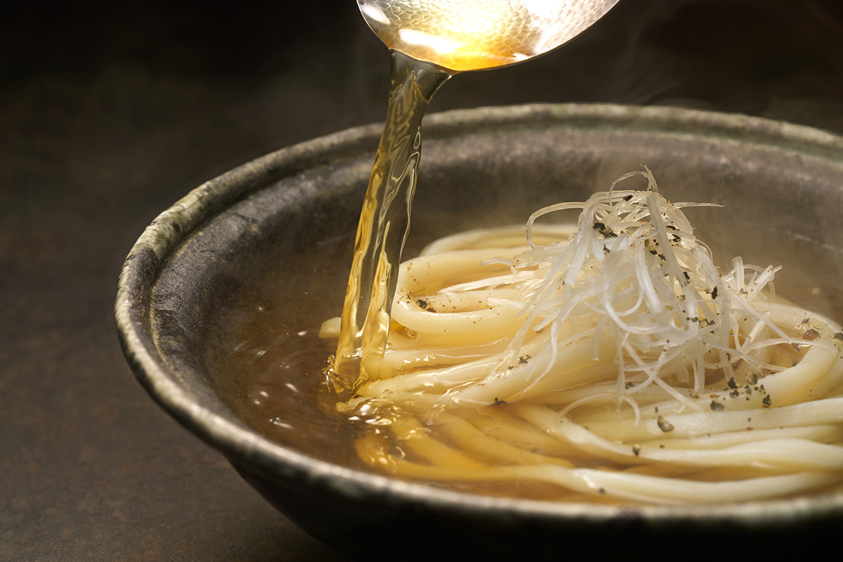 繊細な香りと奥深いうま味を生かすには、細麺の稲庭うどんがおすすめ。