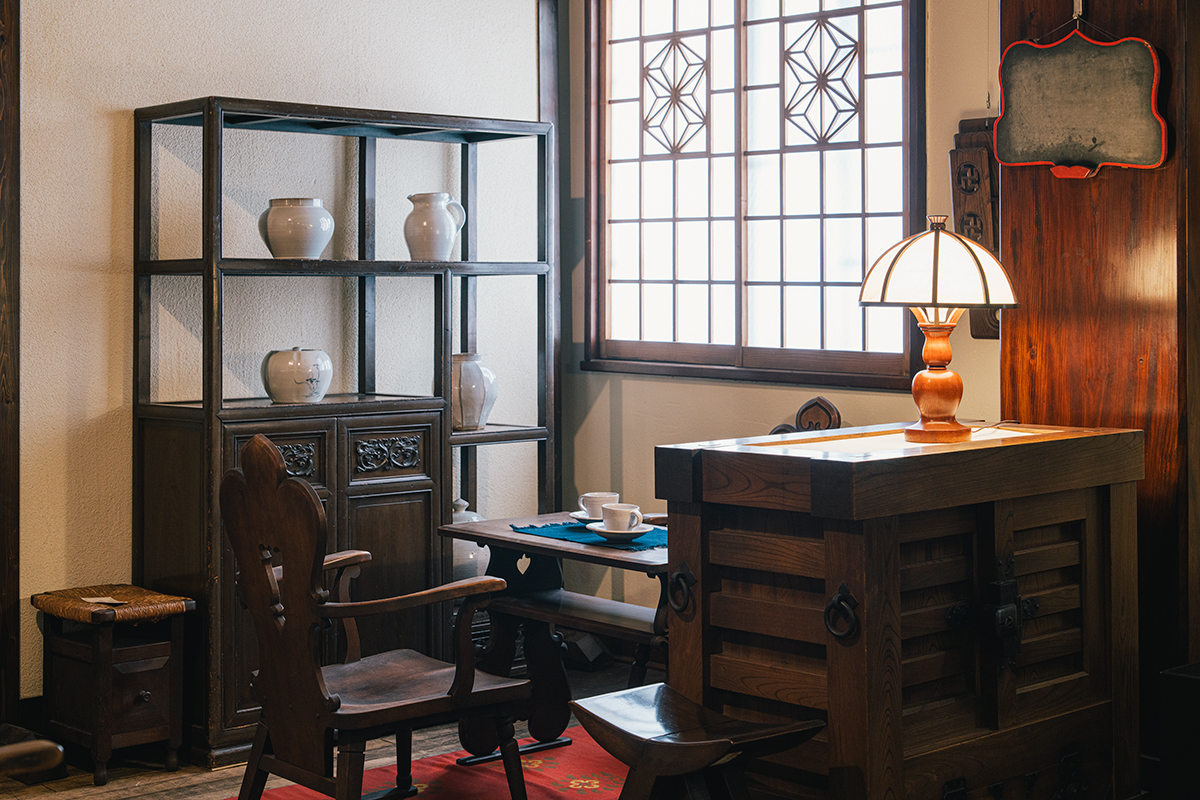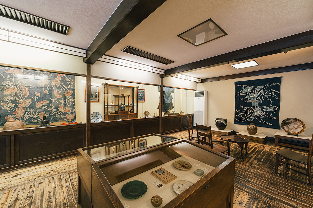 重厚な建築に、細部にまで民藝の美意識が貫かれた空間では、貴重な古民藝から新作民藝まで多岐にわたる工芸品が展示されている。