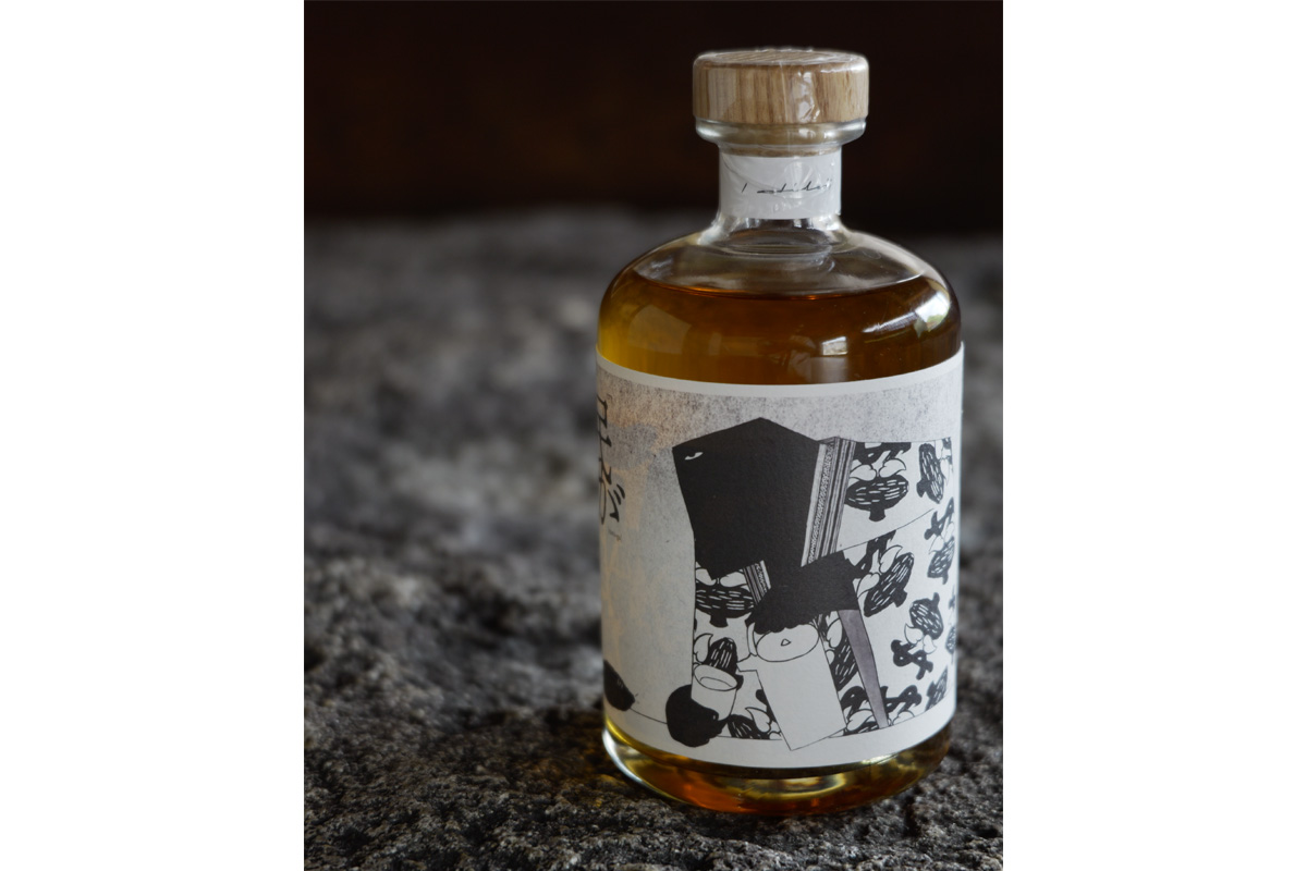 1928年創業、宮崎県にある焼酎蔵「松露酒造」とコラボレーションし、テラダさんによる描き下ろしラベルをまとった特別焼酎《民が》。伝統的な本格焼酎の製法にイノベーティブな蒸留方法を掛け合わせ、原酒を和栗製の木製樽に貯蔵してつくられたオリジナリティー溢れた1本だ。
