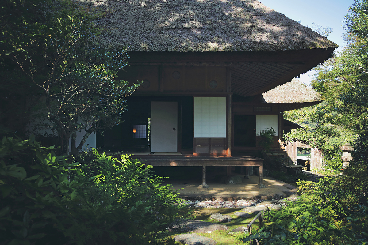その名と地を継承したのは、明治期に神戸で貿易商として成功を収めた河内寅次郎。郷里に余生の場を求め、肱川を望む崖上に臥龍山荘を築いた。桂離宮や修学院離宮といった王朝文化の営みに学びつつ、選び抜かれた自然素材を卓越した職人技で組み合わせ、自然の変化と響き合う木の建築がかたちづくられている。