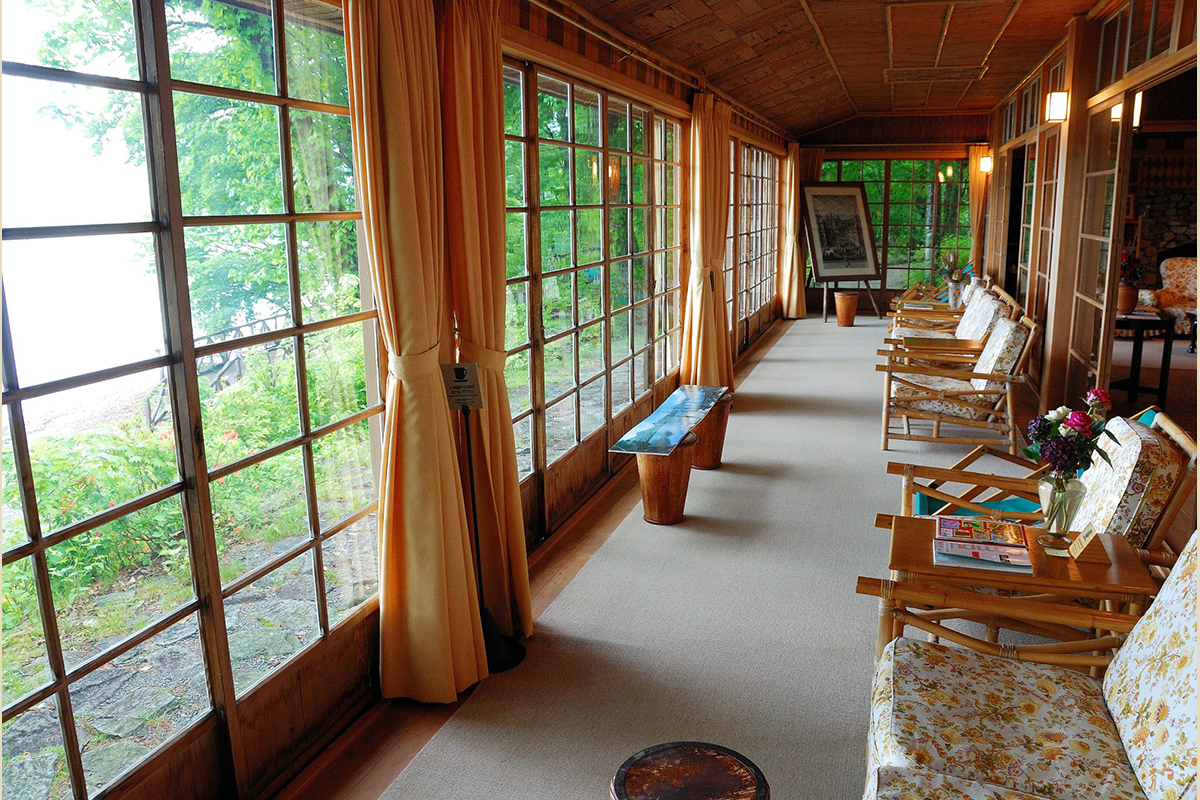 国際避暑地として発展した栃木県日光市にある中禅寺湖畔に、1928年に建てられた夏季別荘で、1997年までは歴代の大使が使用。現在は、当時の材料をできるだけ再利用して復元した建物が残る。本邸の1階の一部はカフェとして、ほかは当時を再現した歴史館として見学可能。副邸は避暑地の歴史を紹介する「国際避暑地歴史館」として利用されている。