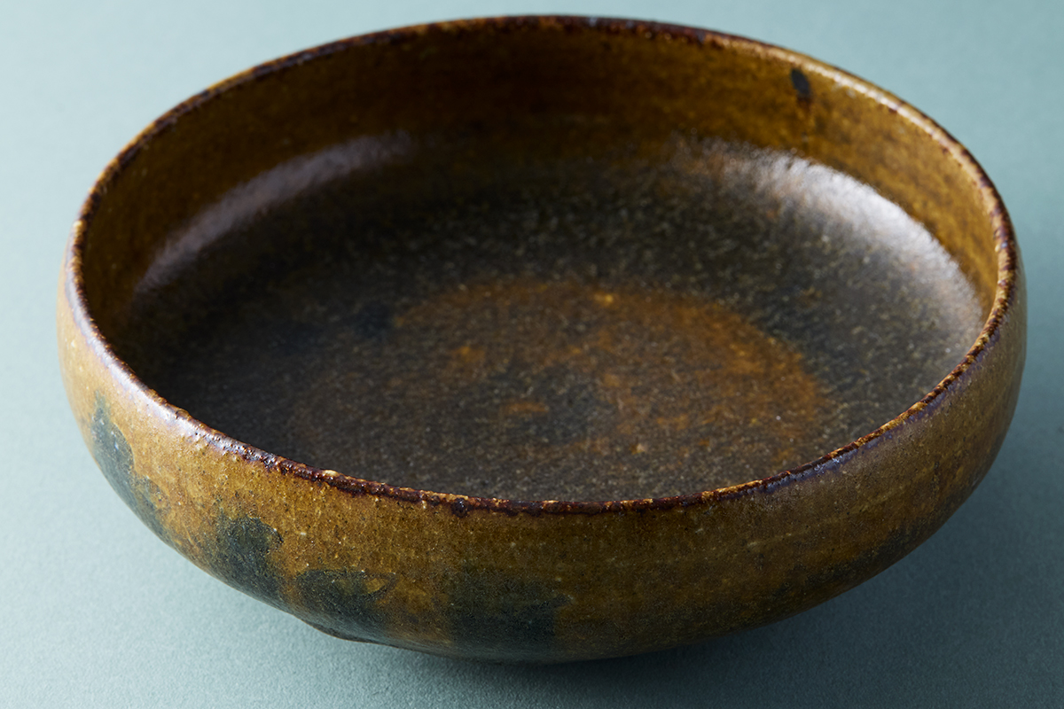 「天然の灰を釉薬の原料として使っている、オリジナルの灰釉(黄瀬戸)です。表面がジワーッと潤い、しっとりとした質感になることを目指しています。釉薬が流れ動く様子も、見どころのひとつです」と語る木村元さん。